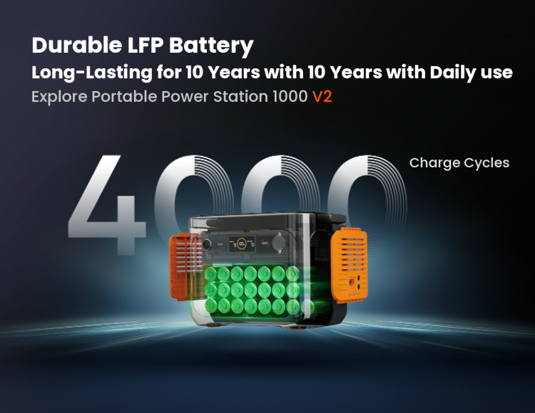 Jackery 1000 v2 Portable Power Station features LFP cells and upgraded ChargeShield 2.0 technology, offering diverse charging modes and 62 safety mechanisms for unparalleled durability and emergency readiness.