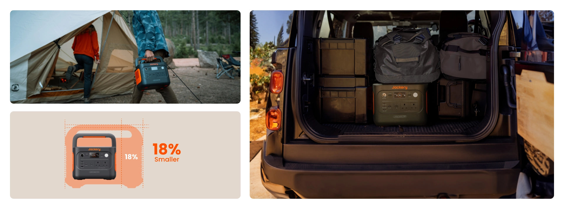 Meet the Jackery 1000 v2 Portable Power Station – your ideal travel companion. Weighing just 23.8 pounds and 18% smaller than its predecessor, the Explorer 1000 v2 is lighter and more portable than mainstream products. It features a compact, foldable handle for easy carrying. Easily fitting into the rear compartment for convenient storage, this powerhouse ensures you’re always ready and never run out of power.
